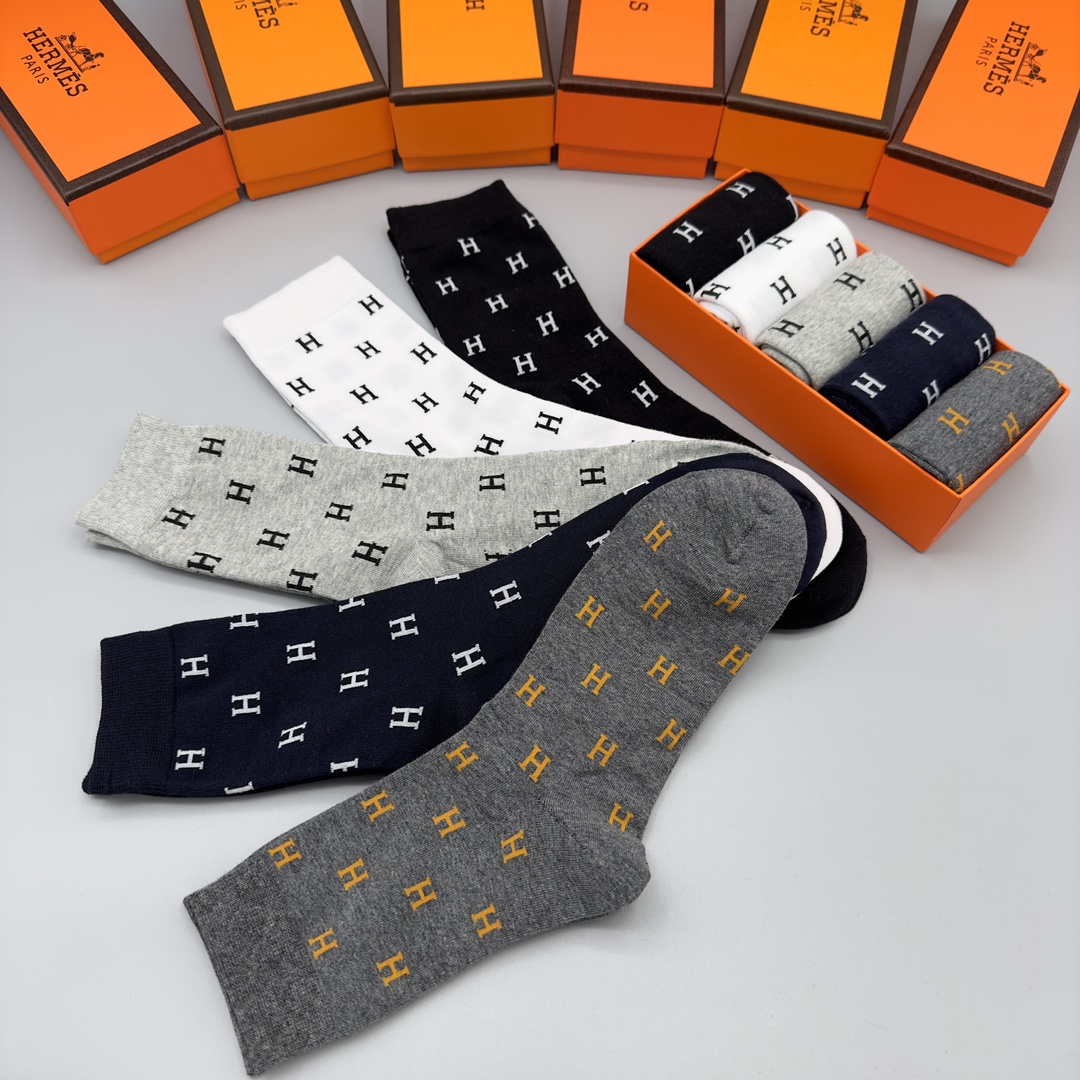Hermes H Logo Unisex Cotton SOCKS (5PC )