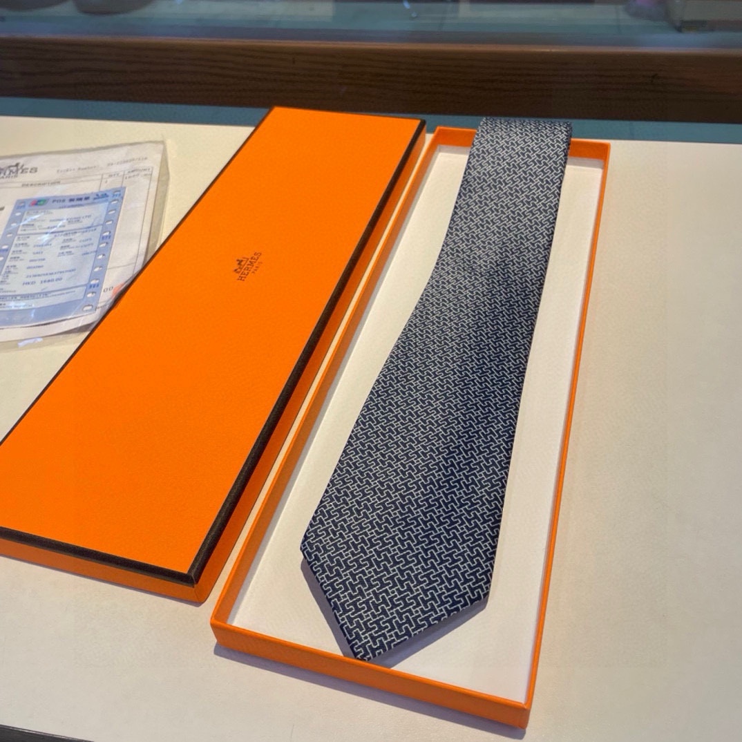 Hermès Classic Men Two-Tone Chain Tie Blue