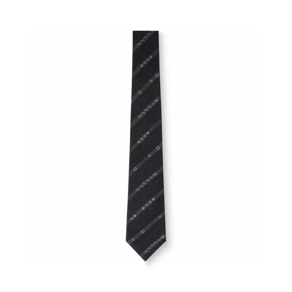 【New】LV Small Logo Jacquard Silk Tie Grey
