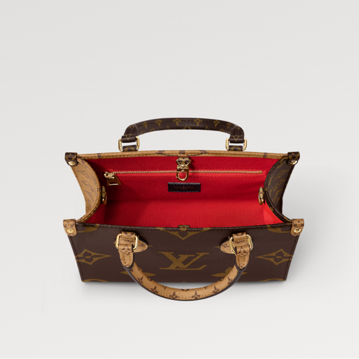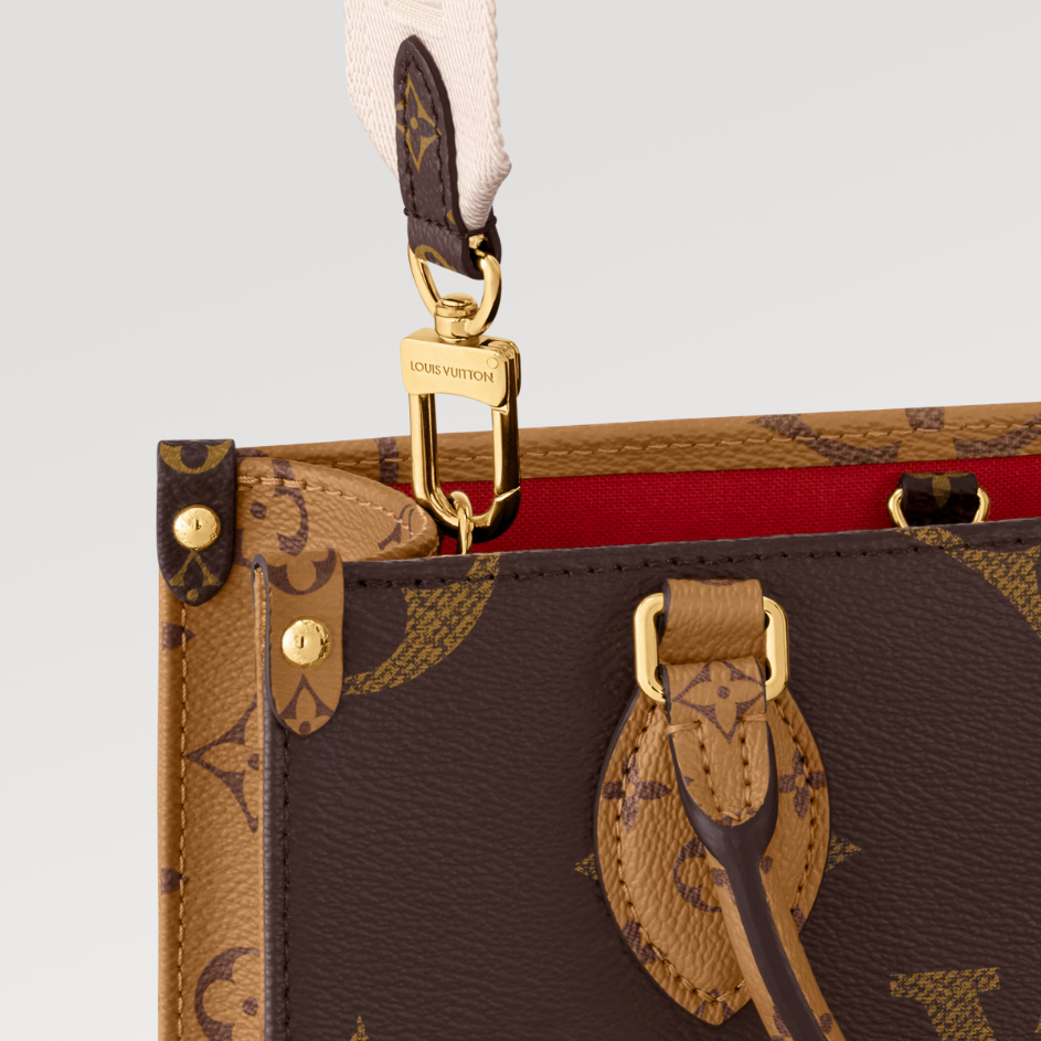 The OnTheGo Small is a combination of Monogram and Monogram Reverse canvases with the Monogram Giant motif. The Toron handles and the jacquard shoulder strap with the brand's logo create a visual contrast, and the detachable coin pocket is suitable for storing coins or small items. It is a stylish and versatile daily companion.