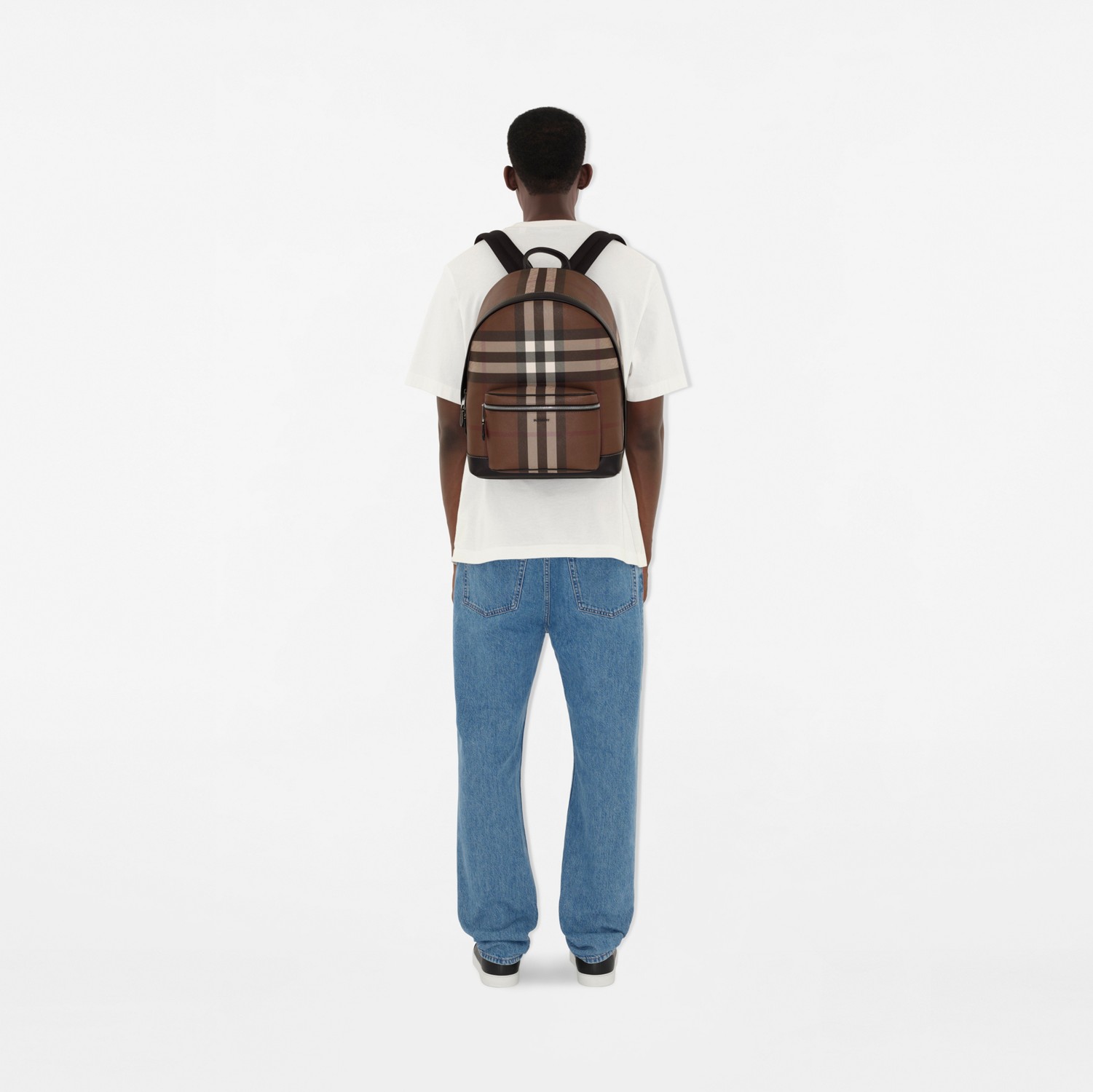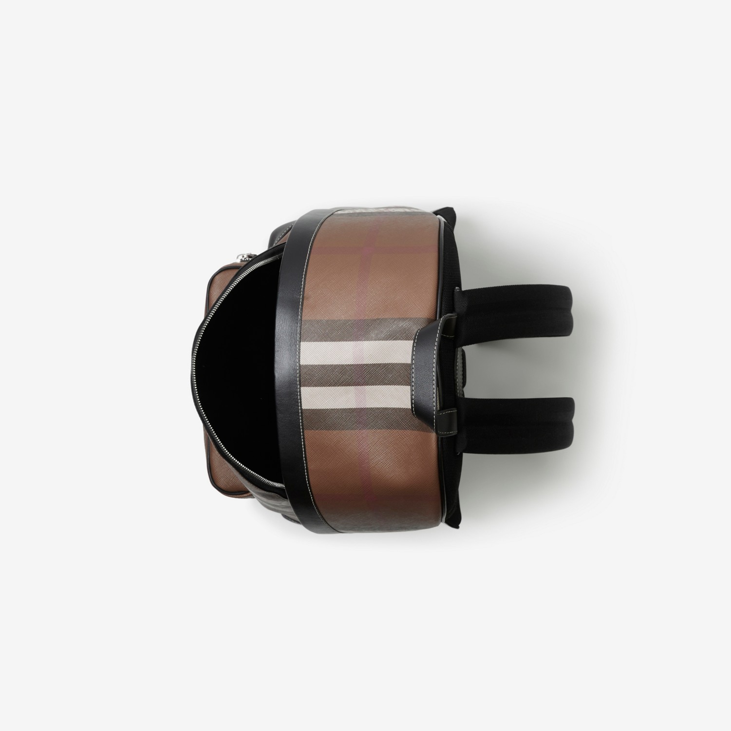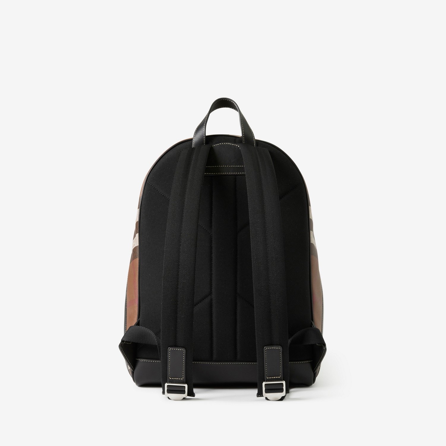 Backpack with roomy interior. Printed in Burberry check and lined in twill. Topstitched leather trim and quilted back panel for comfort.