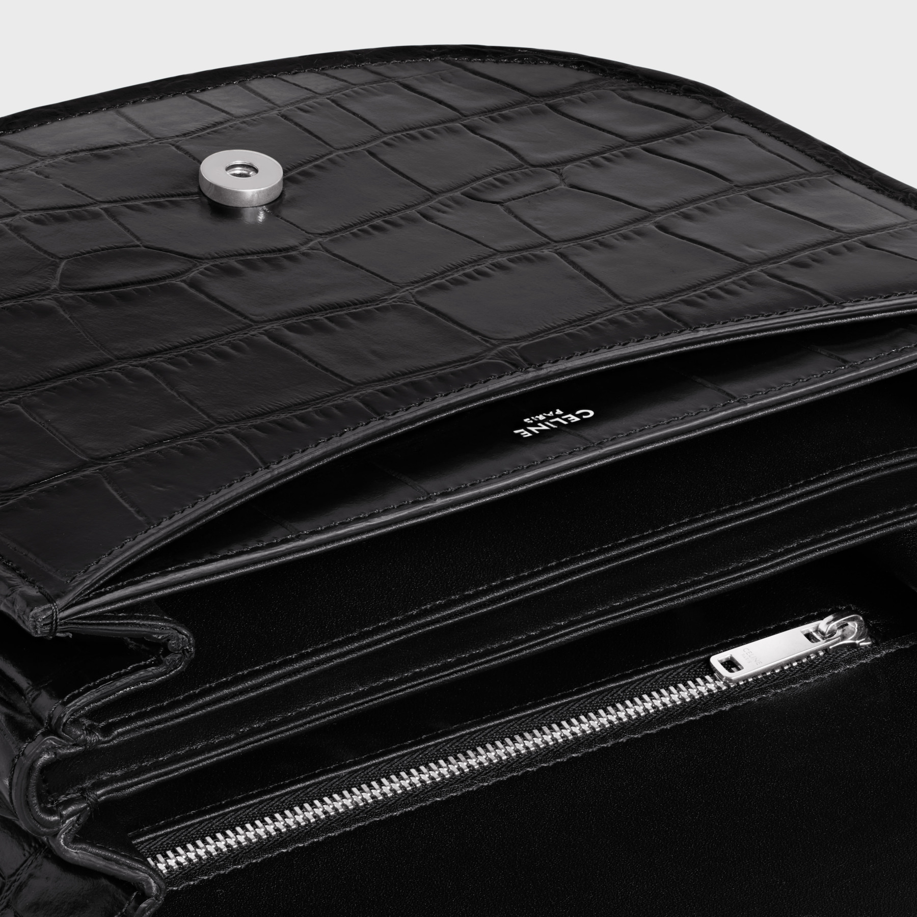 Flap with decorative TRIOMPHE lock, snap closure