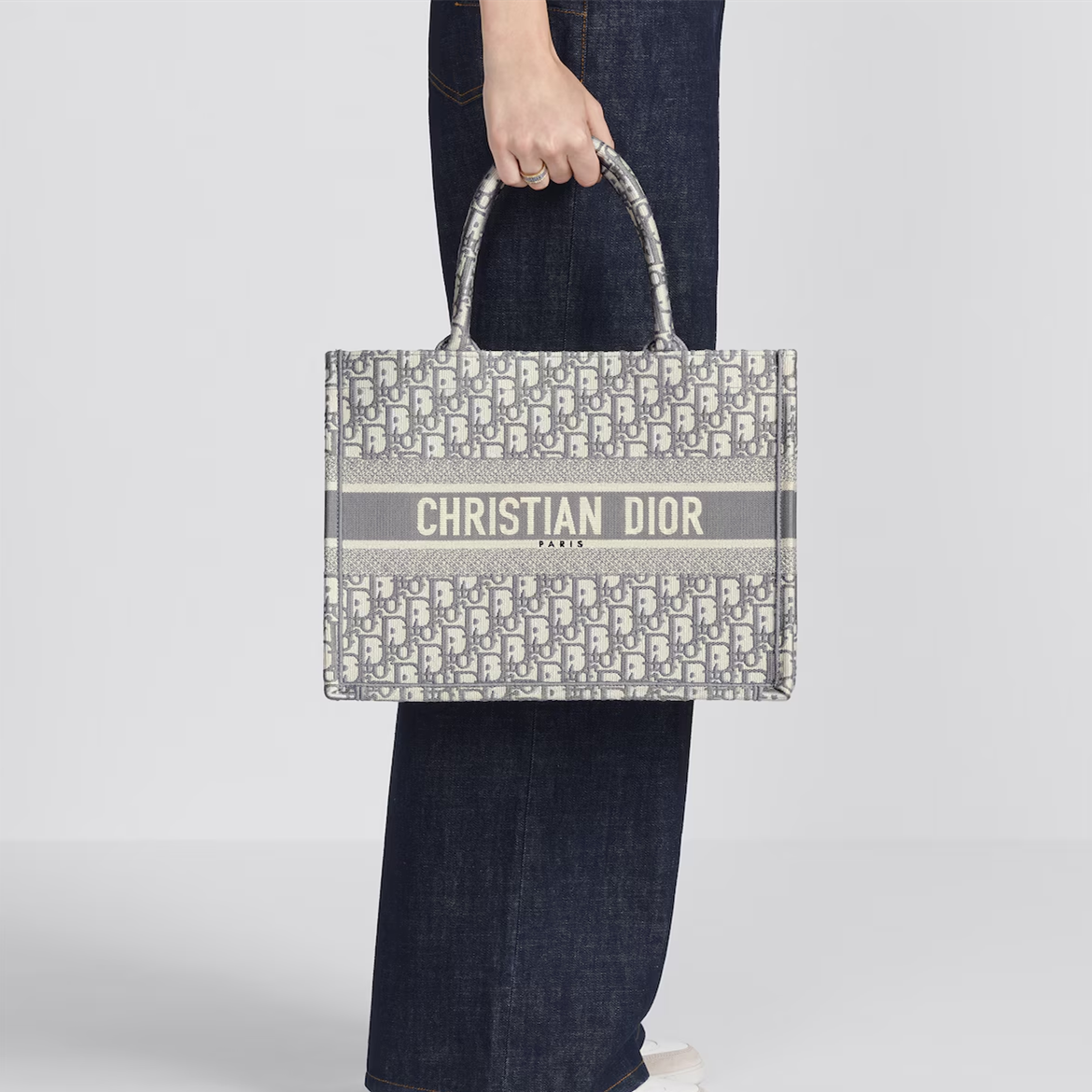 Designed by Maria Grazia Chiuri, Creative Director of Dior Women's Collections, the Book Tote is a staple of the Dior aesthetic. Decorated with an all-over off-white and grey Oblique print, it can hold all your daily essentials. The medium size features the Christian Dior Paris logo on the front, a tribute to Dior's savoir-faire, and can be carried by hand or on the shoulder.