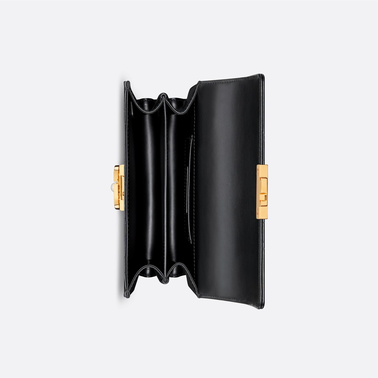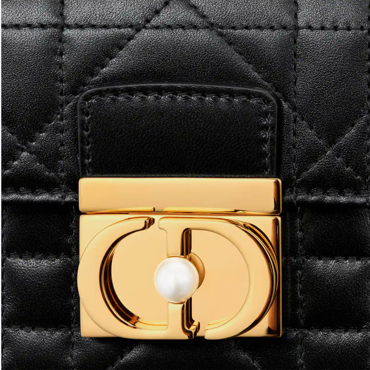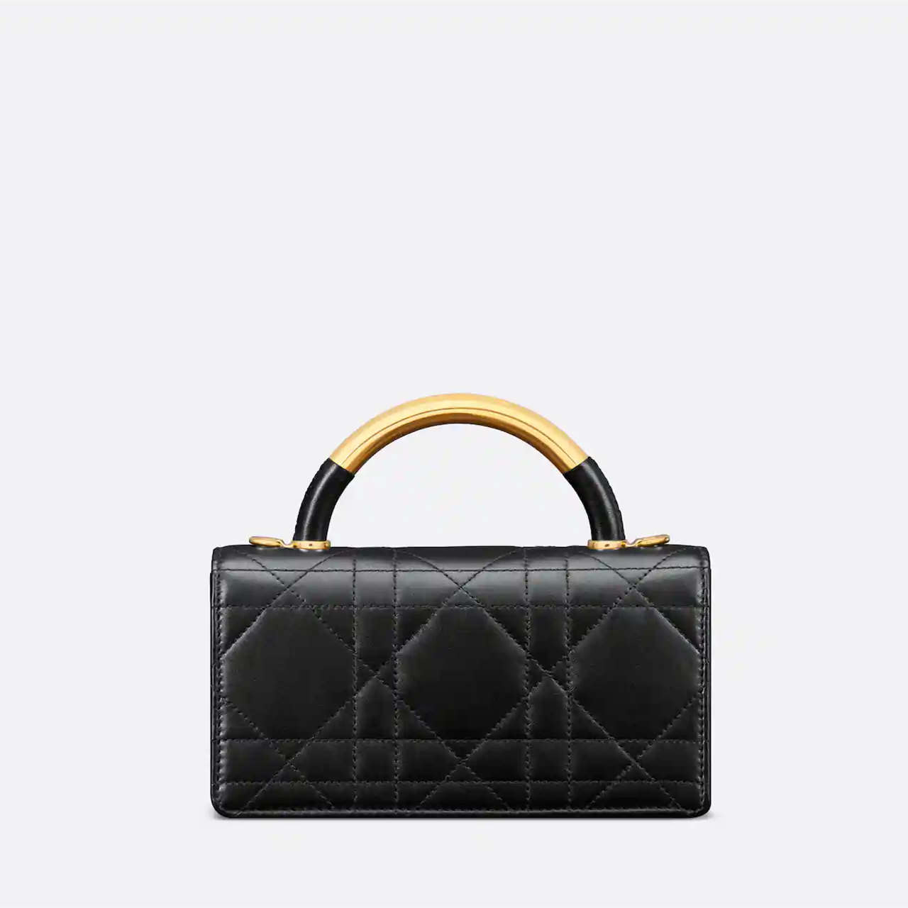 This Dior Ange handbag is a new product in the Fall 2024 ready-to-wear collection, opening Dior's new series with an elegant and fashionable aesthetic style. Crafted from black cowhide leather, it is decorated with oversized cannage stitching, and the stiff antique gold-finished metal top handle is engraved with the Christian Dior Paris logo. The flap is decorated with a CD buckle embellished with resin beads, which is unique in design. The silhouette with triangular gussets is matched with two spacious compartments and a slip pocket to store various daily necessities. Mini style, elegant design, adjustable and detachable chain shoulder strap composed of gold-finished metal CD chain rings embellished with resin beads, can be carried by hand, shoulder or crossbody.