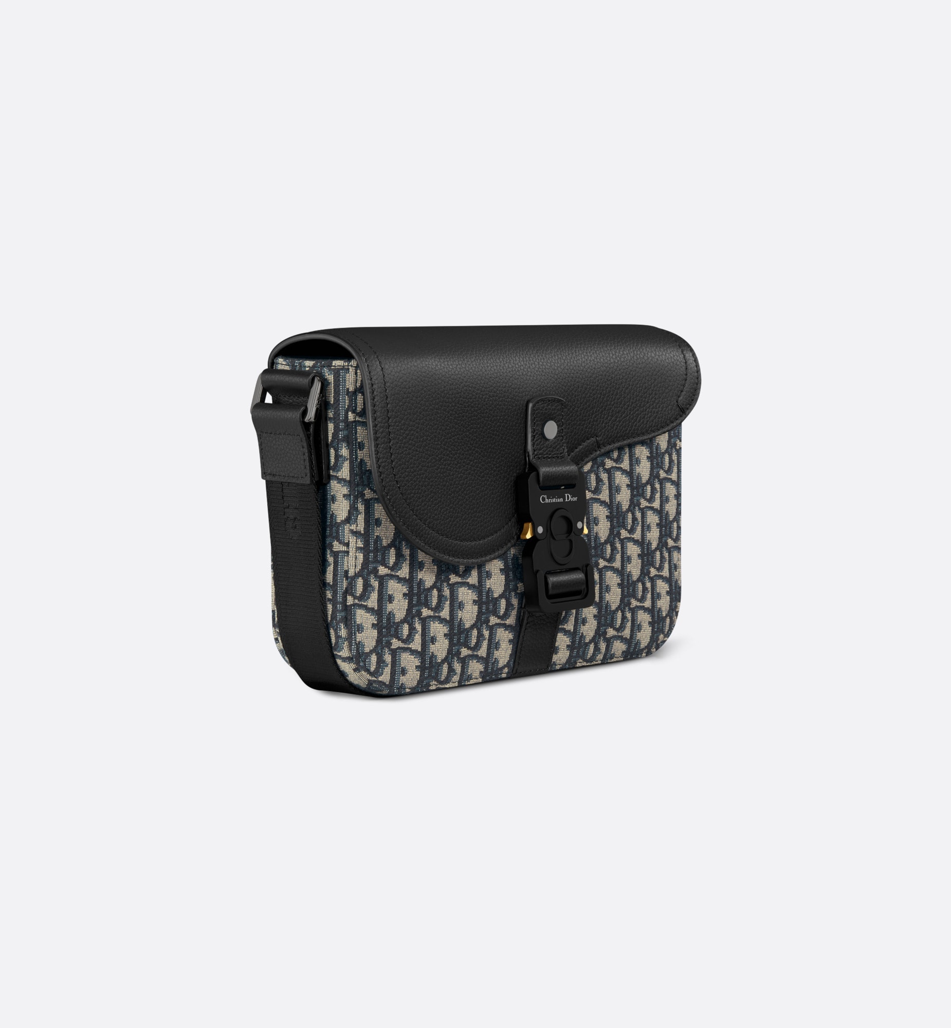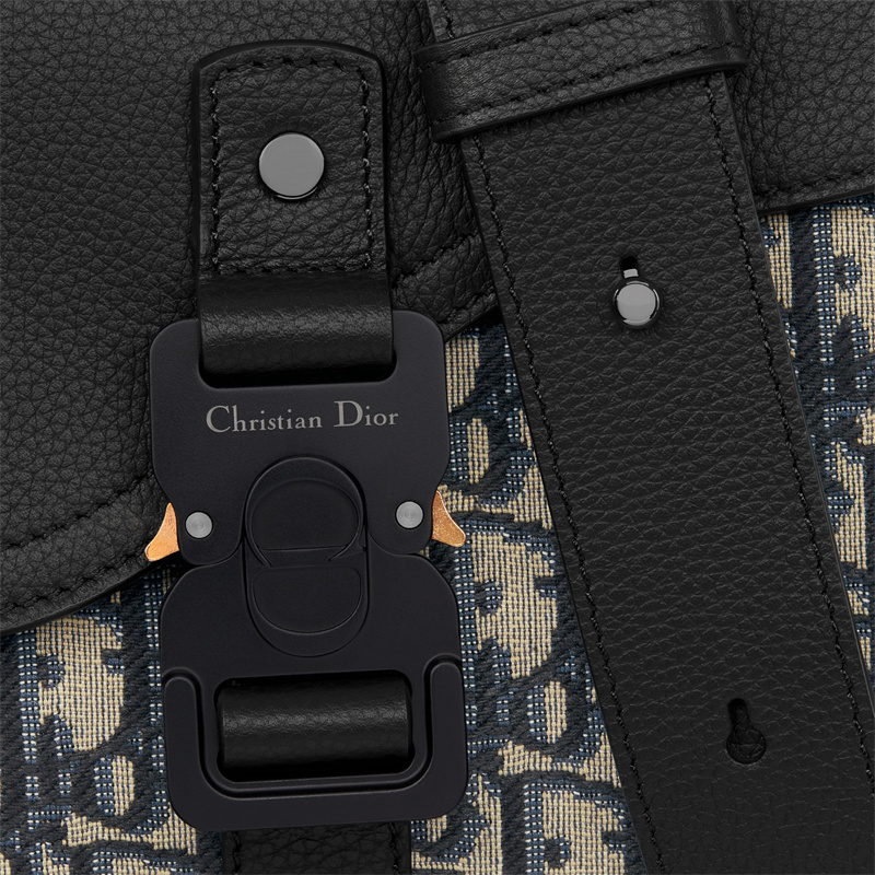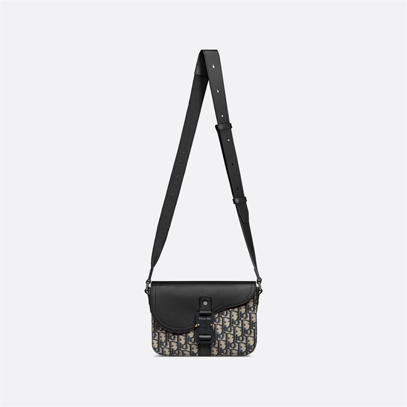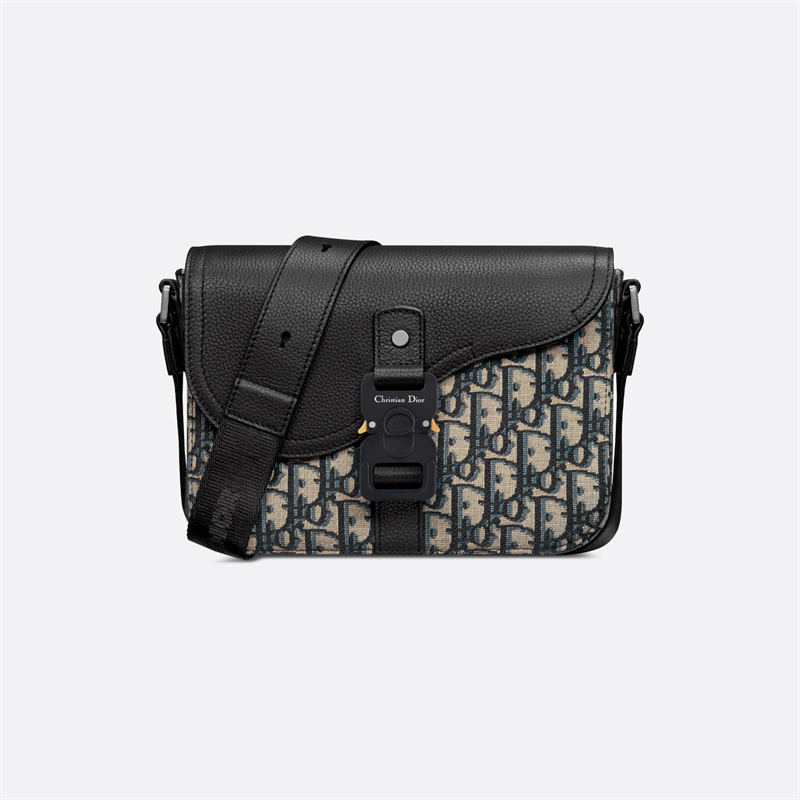The Saddle messenger bag is a smart and stylish statement piece. Crafted in beige and black Oblique print fabric, it features a black grained calfskin saddle flap, enhanced by an aluminum buckle. The spacious interior compartments and a back slip pocket provide space for all your daily essentials. Small size with adjustable leather and Christian Dior jacquard shoulder strap for shoulder or crossbody wear.
