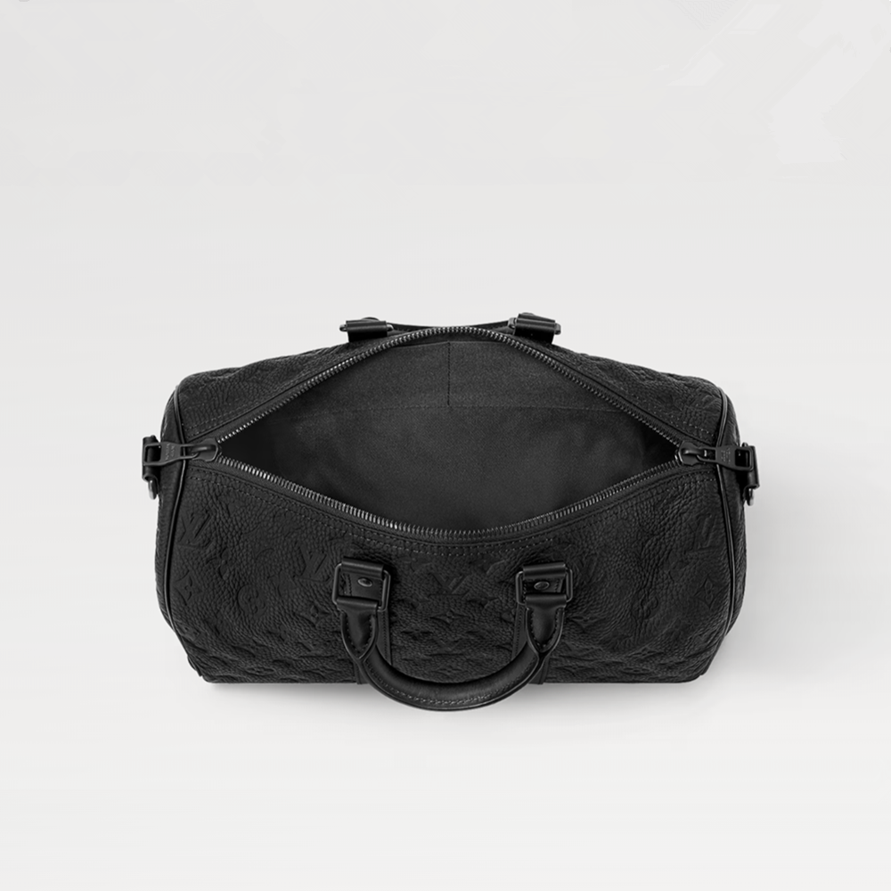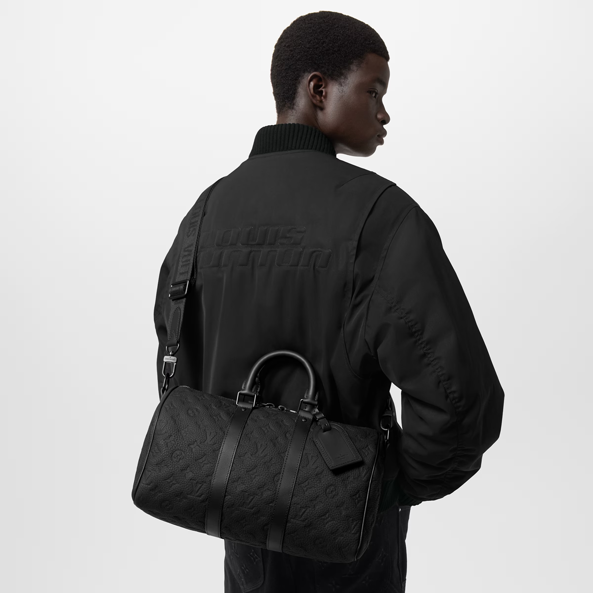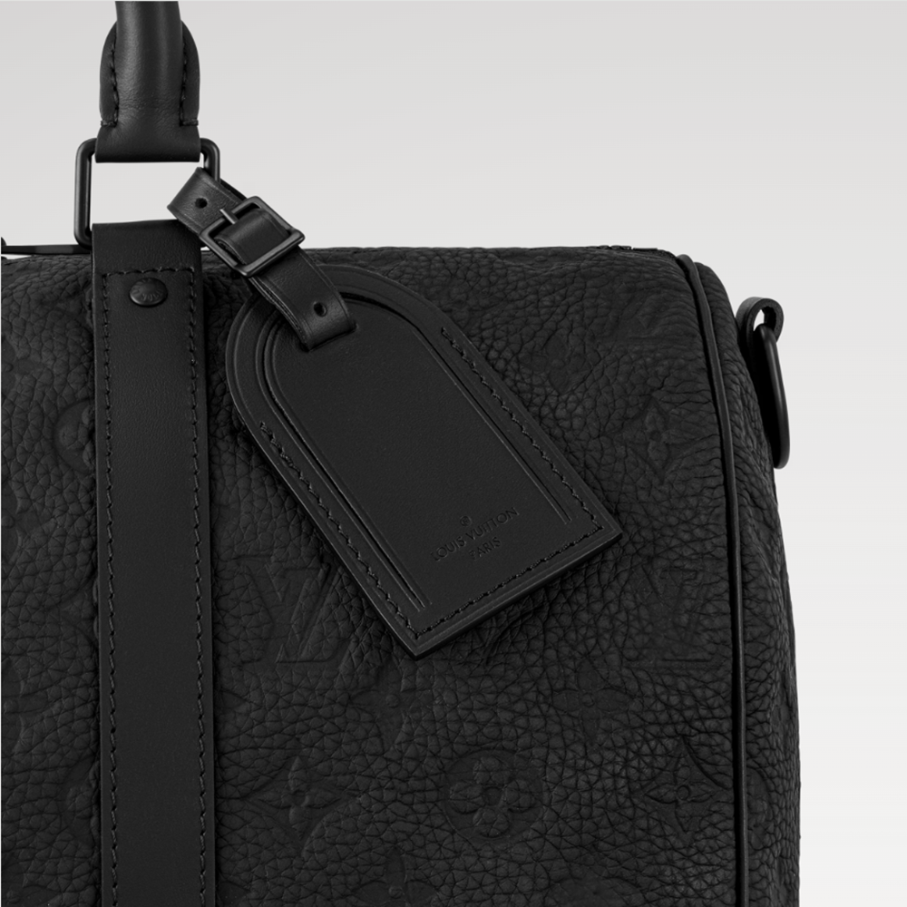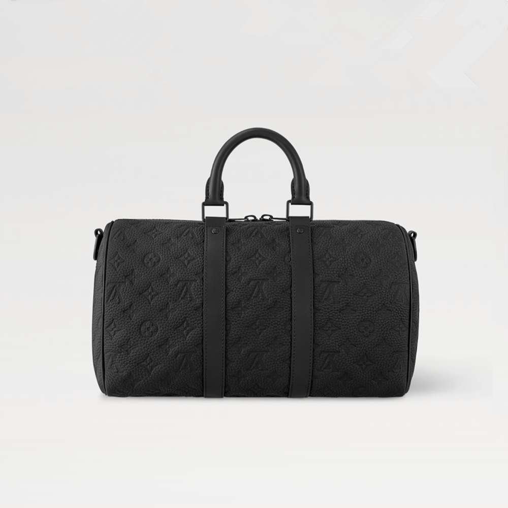 The Keepall Bandoulière 35 bag is a miniature version of Louis Vuitton's classic Keepall holiday bag. Full-grain Taurillon leather with embossed Monogram pattern, leather side straps and top leather handle continue the Keepall series' iconic elements, and the shoulder strap is detachable and adjustable.