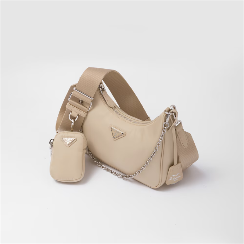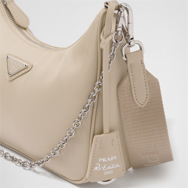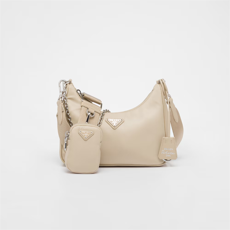 The Prada Re-Edition 2005 3-in-1 crossbody bag is made from Re-Nylon and is inspired by the iconic Mini Hobo bag. Re-Nylon is made from ECONYL® yarn, which is made from recycled ocean plastic, fishing nets and textile fibers. The saffiano leather trims are unique and the shoulder straps come with a detachable pouch for versatile styling.