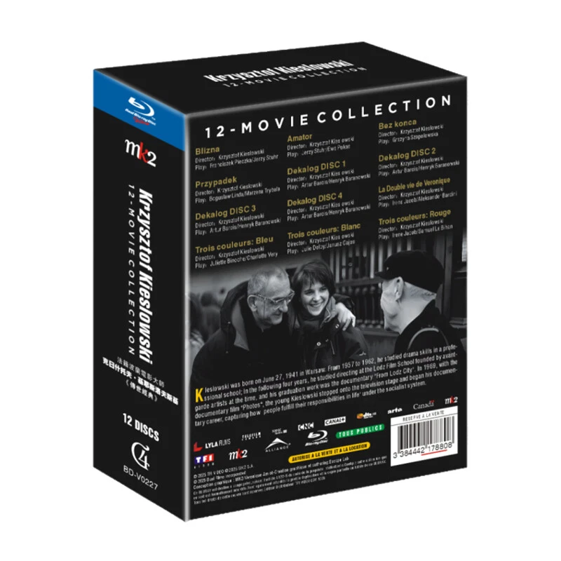 【Collection Overview】This 12-disc Blu-ray box set is a definitive retrospective of Krzysztof Kieslowski’s most important cinematic works, spanning his early Polish features to his internationally celebrated masterpieces. Includes Blizna (1976), Amator (1979), Bez końca (1985), Przypadek (1987), Dekalog (1989, 4 Discs), La Double vie de Véronique (1991), and the acclaimed Three Colors trilogy (Bleu, Blanc, Rouge).