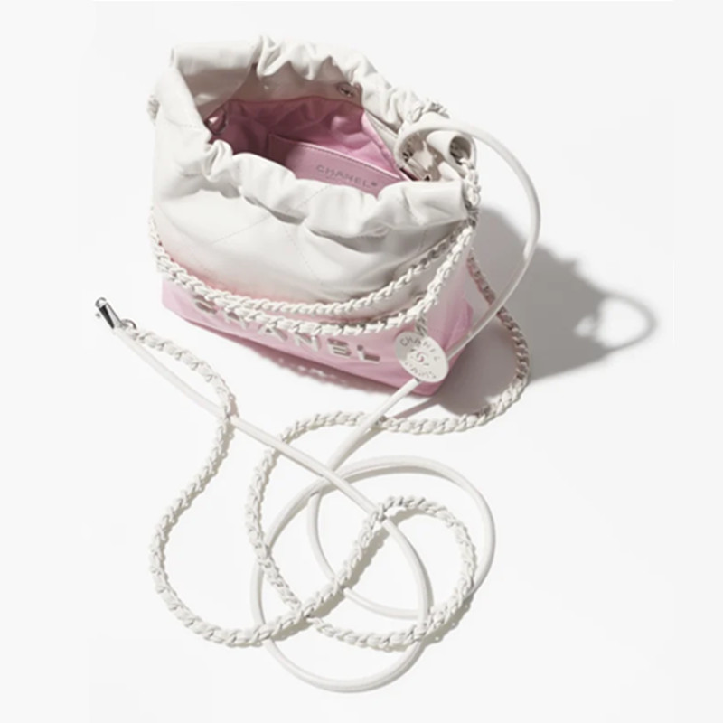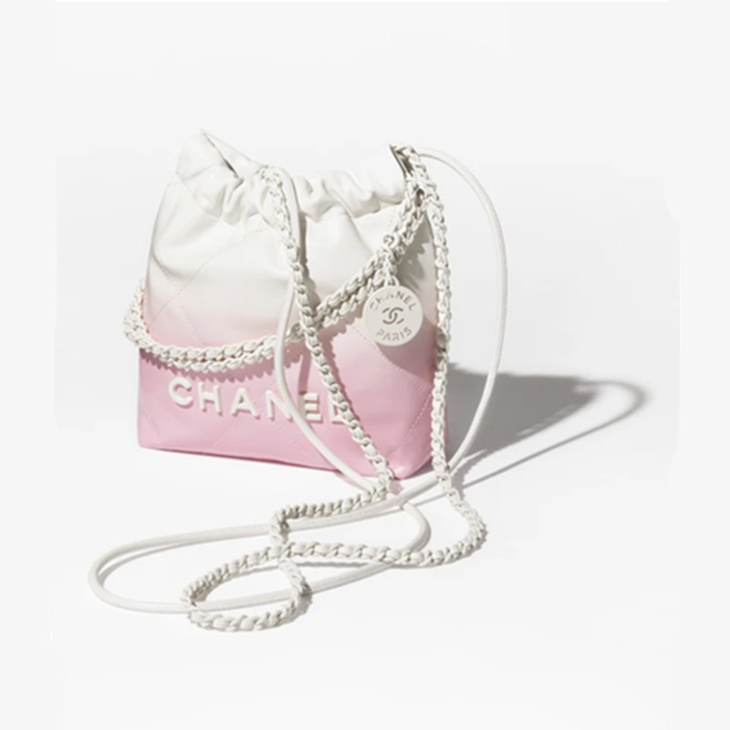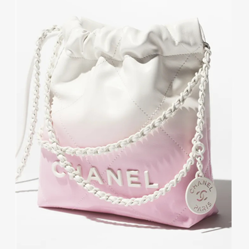 Gradient color mini handbag chain bag, gradient color lacquered calfskin and lacquered metal, the leather has a pearlescent effect, with fine shimmer under the light, the lining is made of high-quality, it looks exquisite and beautiful on camera, and the shoulder strap is detachable.