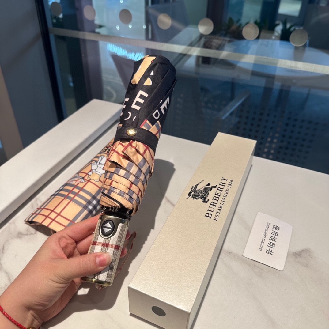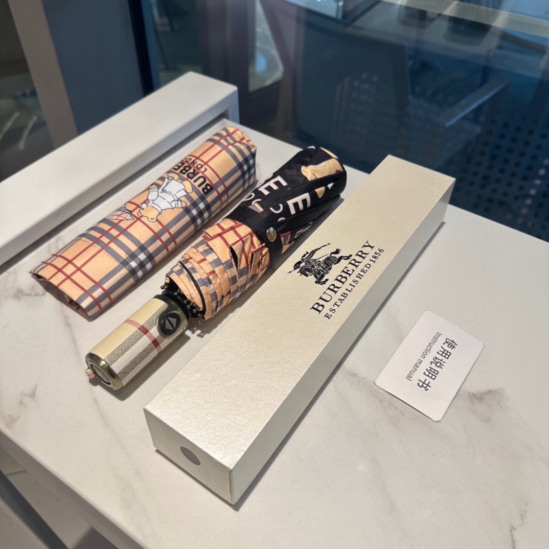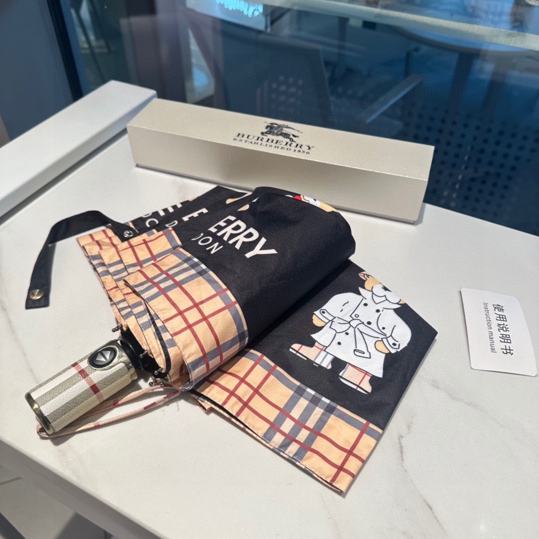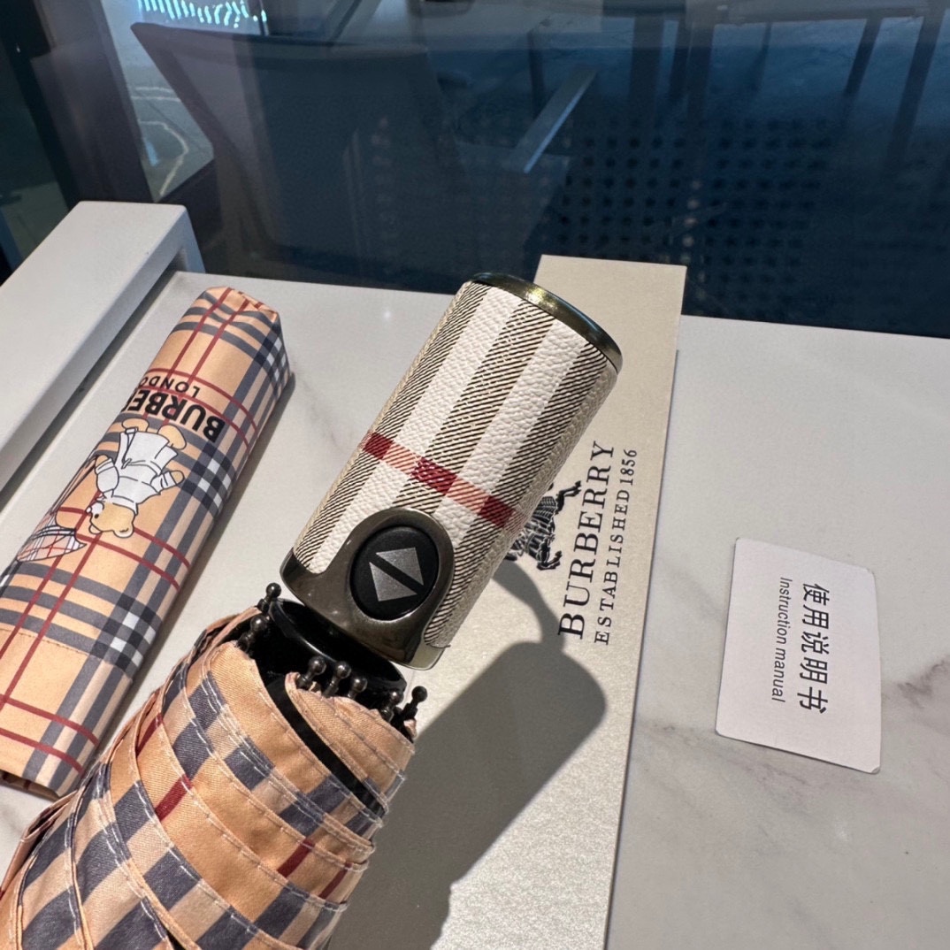 【Timeless Elegance】 The Burberry Bear Pattern Folding Umbrella features the signature Burberry bear motif in a chic, compact design. This 3-fold automatic umbrella is perfect for both rainy and sunny days, with its strong UV protection ensuring comfort under the sun. Made with durable materials, this umbrella reflects the brand's luxury craftsmanship.