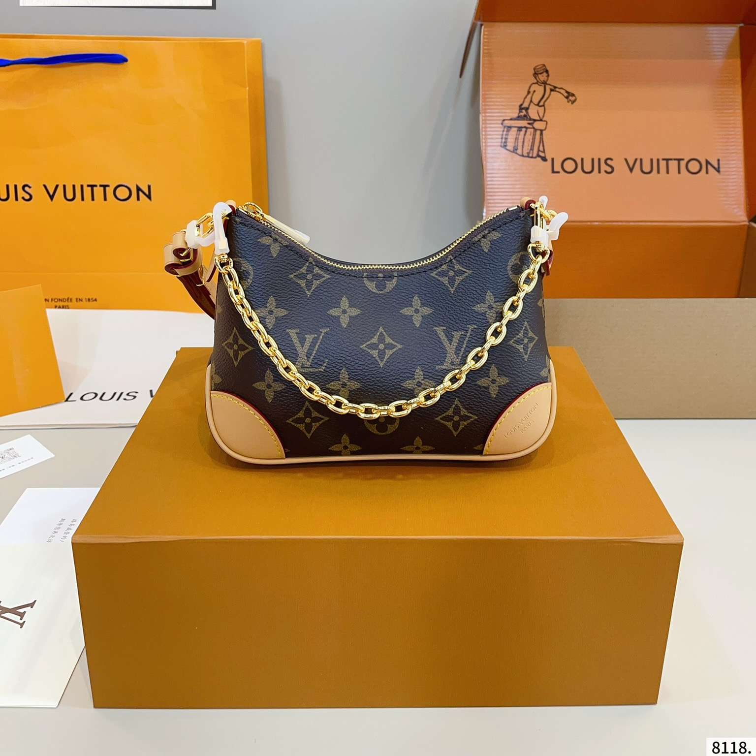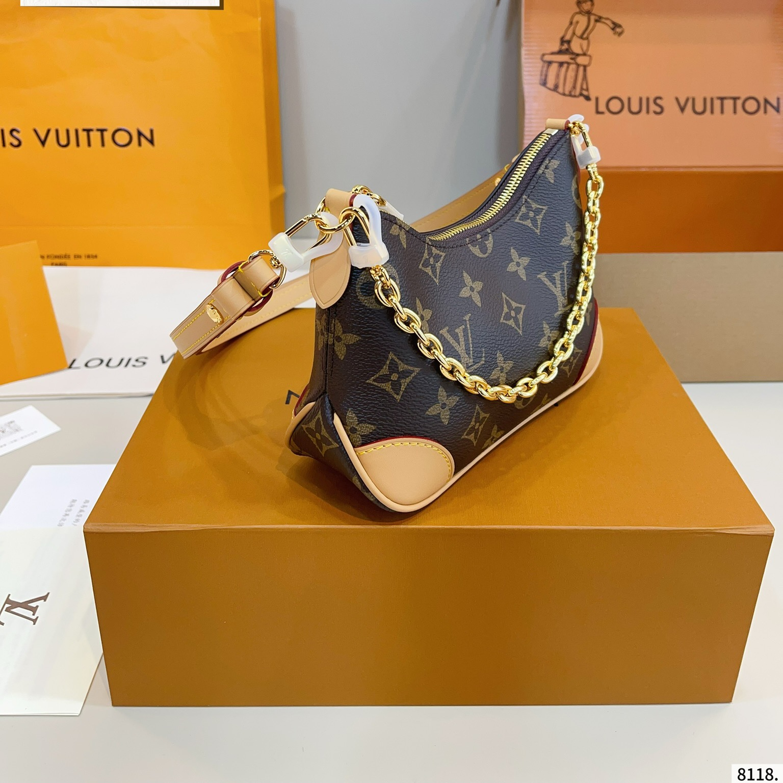 【Iconic Vintage Aesthetic】This mini hobo bag features the classic LV Monogram print with a horn-shaped silhouette—perfectly blending retro elegance with modern street flair.